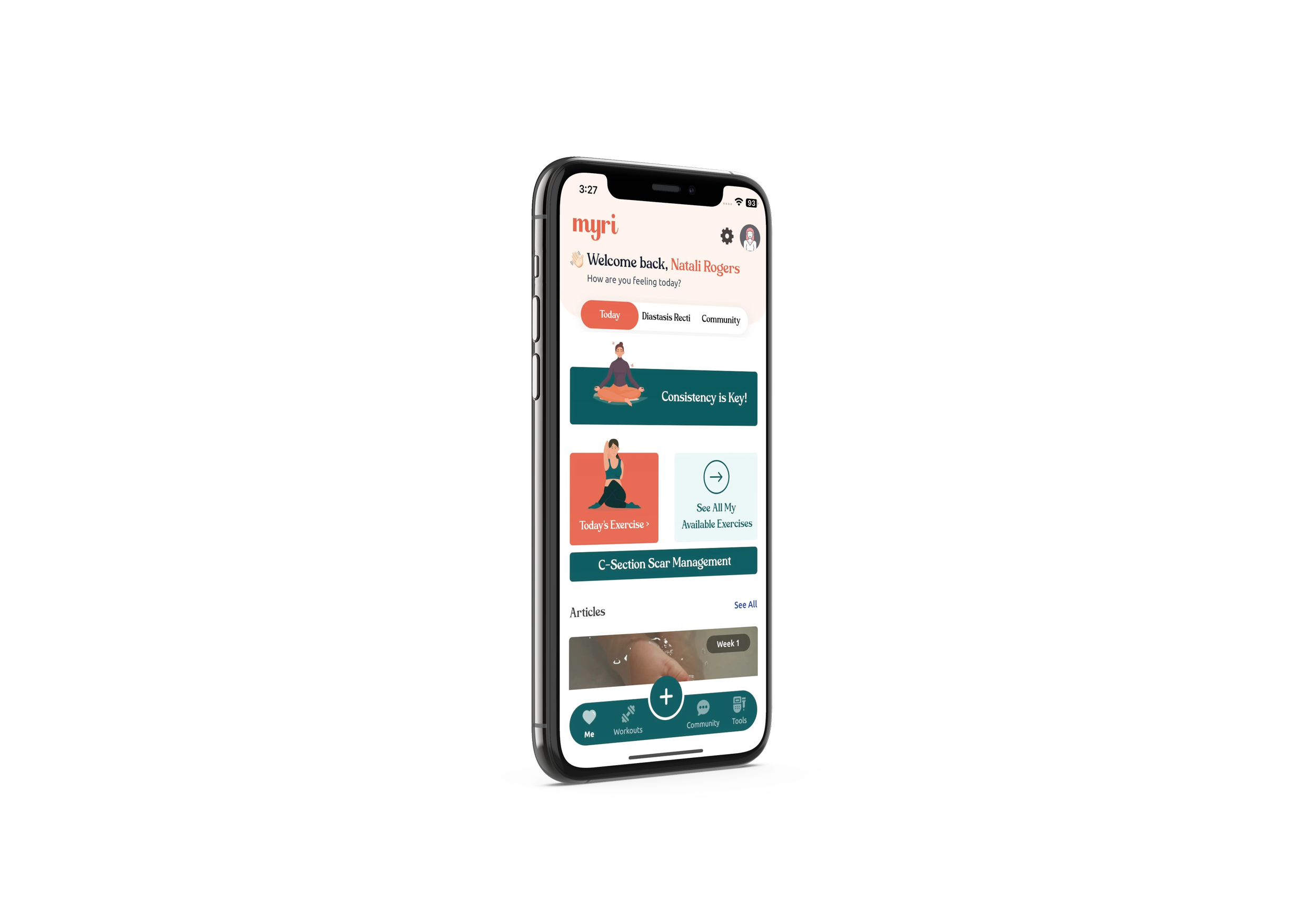 To navigate life after delivery, we help mamas by offering delivery-based recovery workouts, feeding, diaper logging, diastasis recti management and more.